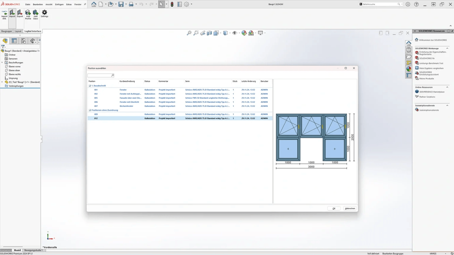 Import von Logikal in SOLIDWORKS.