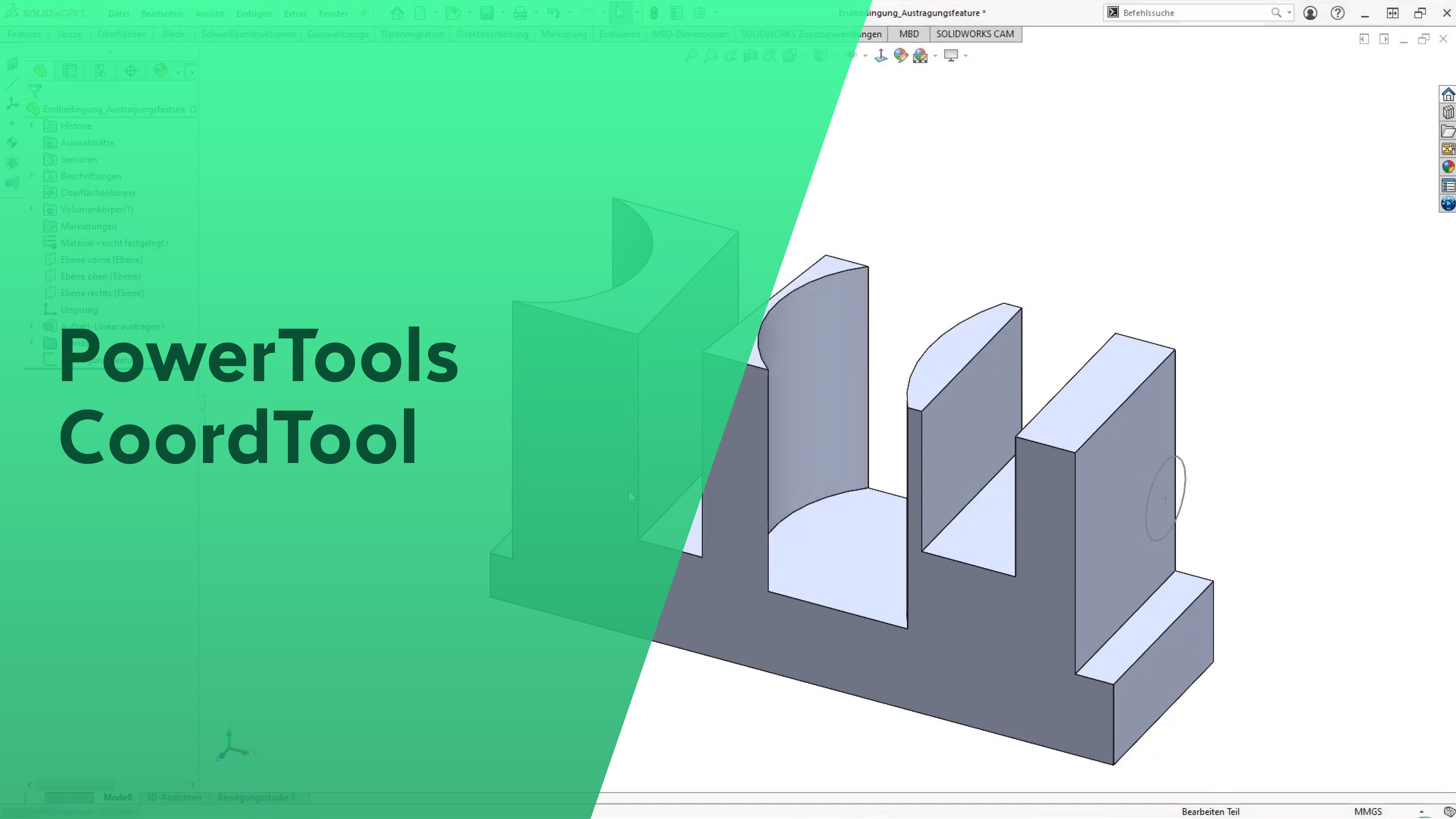 PowerTools CoordTool vereinfacht und beschleunigt das Ermitteln von Koordinaten ausgewählter Modellelemente in Einzelteil-, Baugruppen- und Zeichnungsdokumenten. Nach dem Auswählen der gewünschten Skizzen, Kanten oder Punkte liest Powertools CoordTool ihre Koordinaten automatisch aus und listet die Ergebnisse übersichtlich in Tabellenform auf.