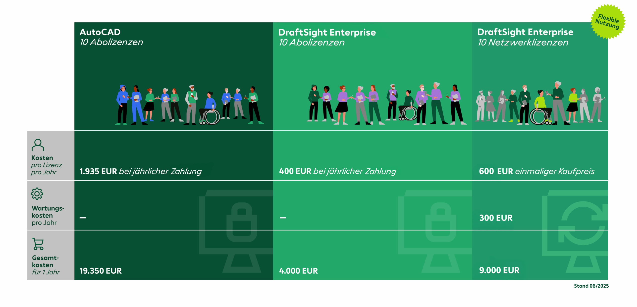 Beispielrechnungen: AutoCAD vs. DraftSight Lizenzierung.