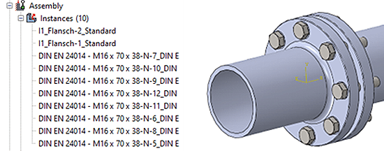 Beispielkonstruktion: Flansch mit Schrauben.