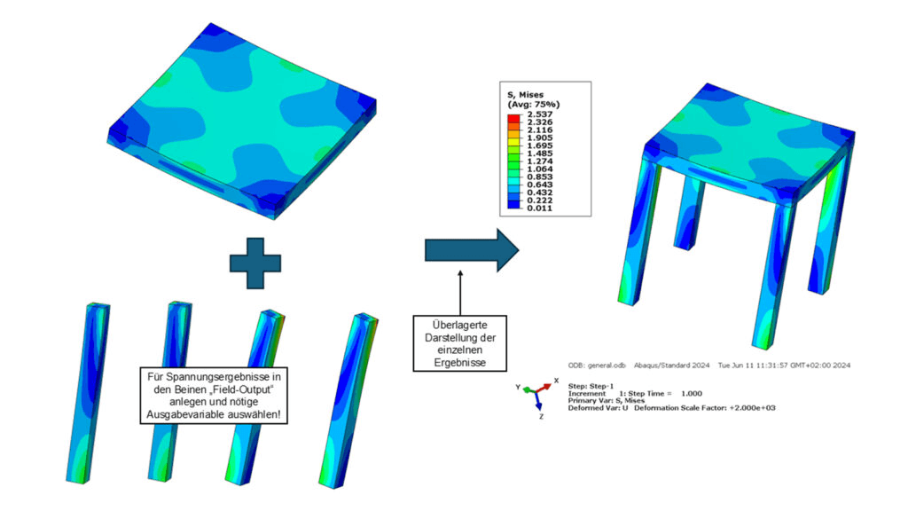 Erstellen Sie im „STEP”-Modul ein „Field Output“ für die Substrukturen und wählen Sie die Variablen aus, die für die Substruktur relevant sind, wie z. B. die Spannungsverteilung in den Tischbeinen.