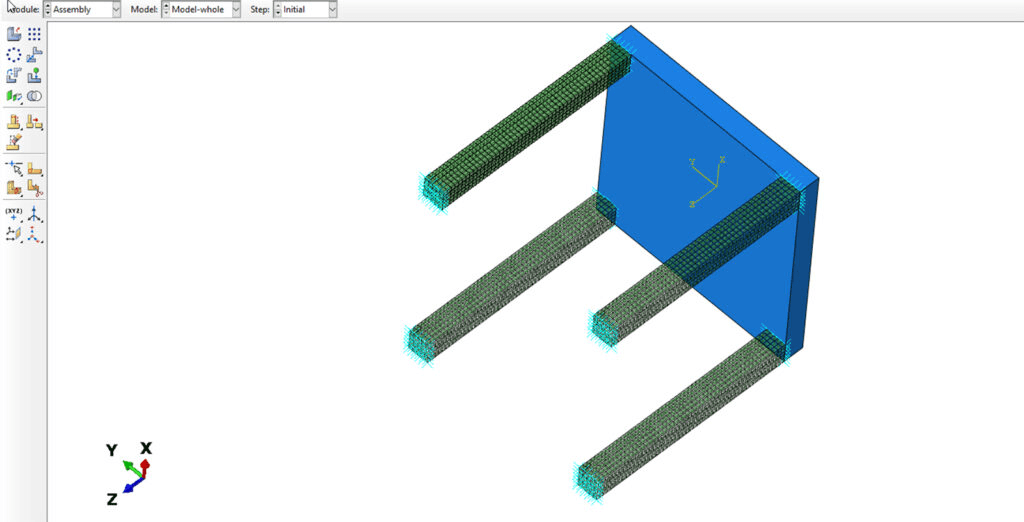 Erstellen Sie im „PART“-Modul die Geometrie des Tischbeins. Definieren Sie anschließend die Materialeigenschaften und die “Section” im „PROPERTY“-Modul und ordnen Sie das Material der “Section” zu.